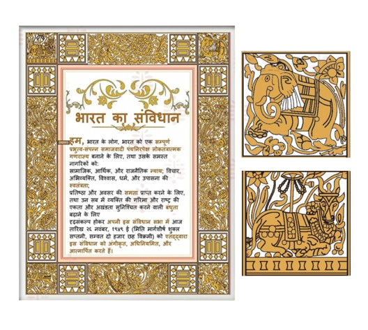 Each of the 75 panels in the mural is inspired by the art and spirit of the Constitution’s Preamble. Artisans interpreted constitutional values through their own cultural lenses and traditional techniques, offering deeply personal and powerful textile expressions. Contributions include work from groups like the Porgai Artisans Association of the Lambadi tribe and a naturally dyed Mata ni Pachedi painting by Dilip Chitara of Viramgam. Every piece reflects the idea of India through the material language of thread, dye, and weave.